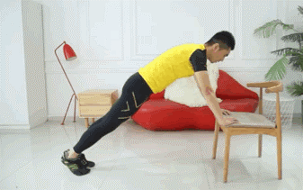 要点:直臂支撑在稳固的椅子或桌子边缘,在每一次俯卧撑撑起之后,加入几次高抬腿的动作,注意,动作过程保持腰腹部的核心收紧,减少身体晃动。这个练习能够同时锻炼手臂、胸肌和腹肌。锻炼60秒,休息30秒,进入下一个练习