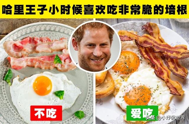 哈里王子在小的时候非常喜欢吃脆的培根,在他8岁的时候,他从迪士尼世界散步回家后,他带回了一种制作培根的新方法,而且真的成为了皇家厨师食谱的一部分。哈里王子告诉皇家厨师应该如何做迪士尼里那样的培根:培根必须先烤一下,然后用纸包在微波炉里放一分钟。厨师原本拒绝这个要求,但品尝之后还是采用了。