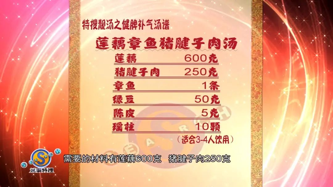 【材料(3-4人份)】莲藕600克,猪腱子肉250克,章鱼1条,绿豆50克,陈皮5克,瑶柱10颗。