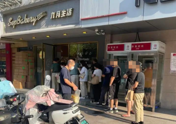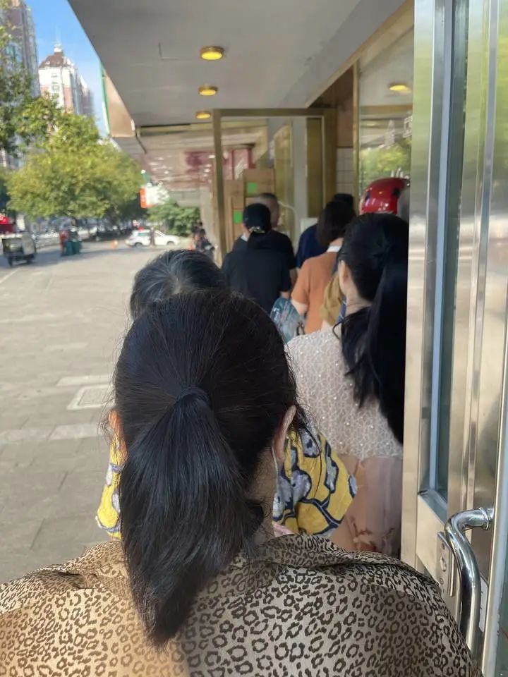 小时新闻记者走出店面时,大约9点钟,店铺前排起的队伍比8点时更长,已经一路排到了旁边的银行门口。